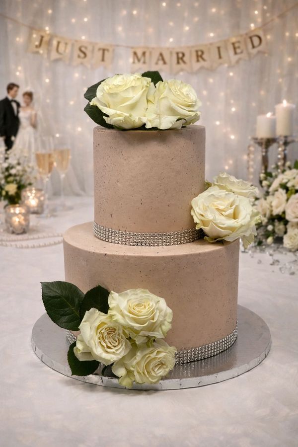 gray marble cake with rhinestone borders